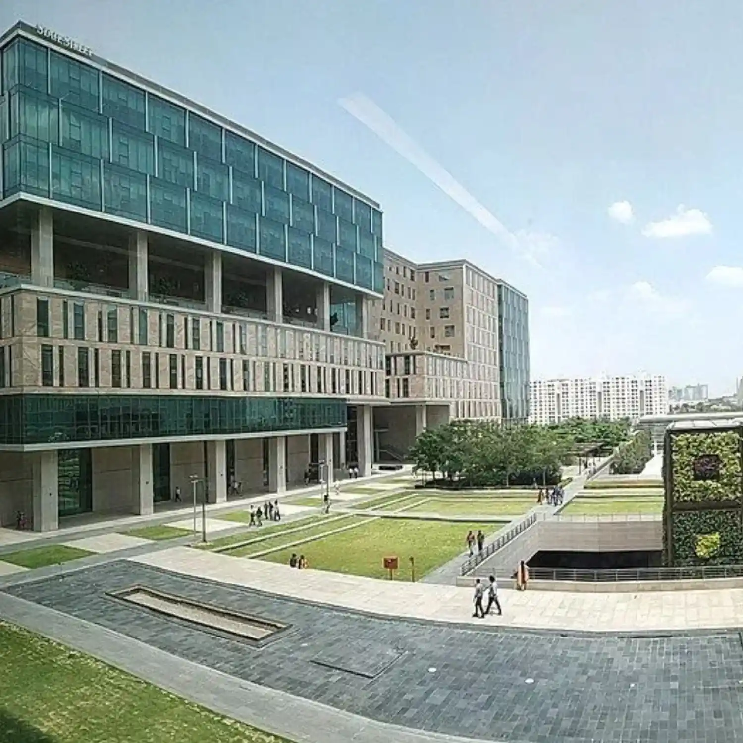 It features multiple towers, tech blocks, retail zones, skywalks and landscaped spaces with continuous employee footfall.