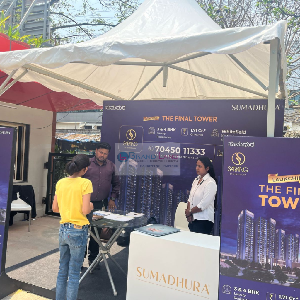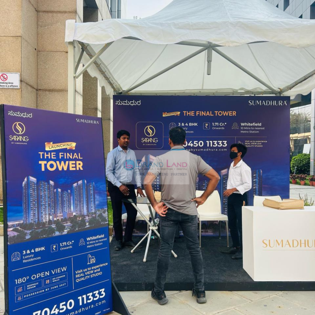 The campaign included promotional kiosks, corporate and society activations, and interactive brand displays that showcased Sumadhura’s premium residential projects. Sales representatives engaged with prospective customers, shared project details, and generated qualified leads.