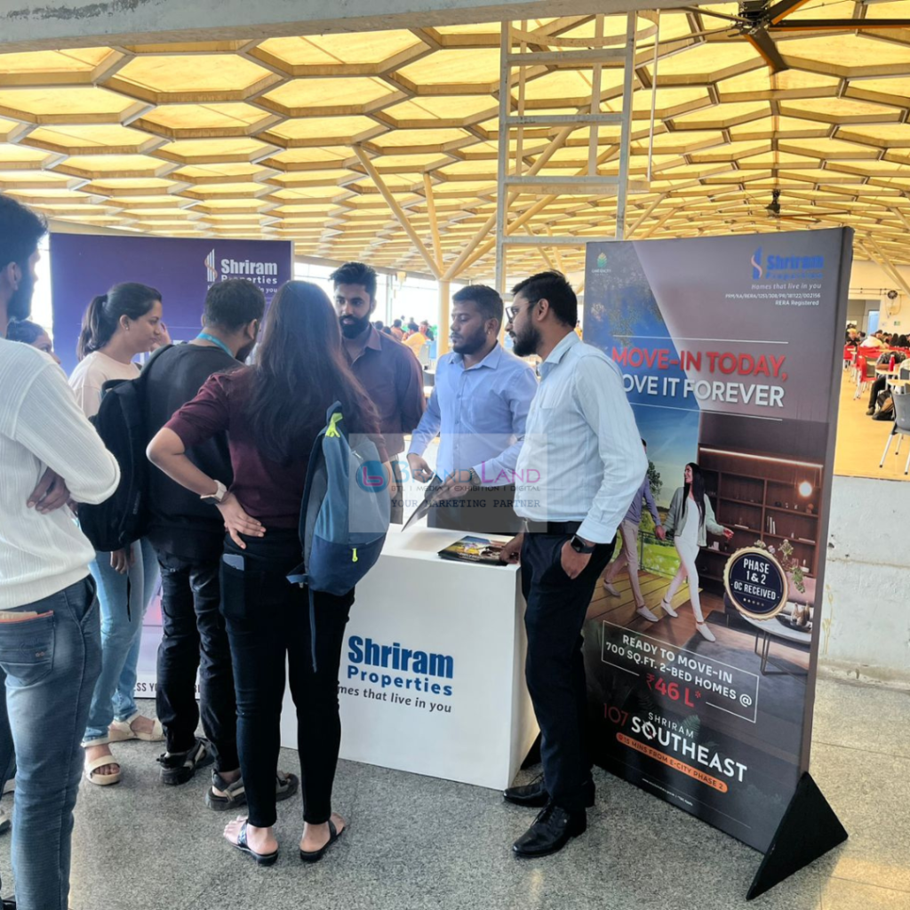 As part of the campaign, the Brandland team installed an interactive display counter within corporate premises, where employees could explore Sriram Properties’ ongoing and upcoming residential developments. The activation included project overviews, brochures, and one-on-one discussions with representatives, helping employees understand project features, pricing options, and home-buying opportunities.